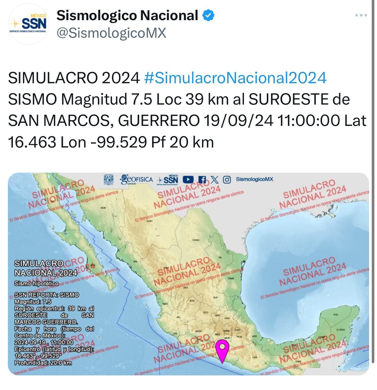Así pues, se simuló un temblor con hipótesis de 7.5 con epicentro en Acapulco, Guerrero. Esto ocasionó que oficinas, escuelas, zonas comerciales, fueran evacuados para que la gente sepa cómo actuar en caso de un sismo.