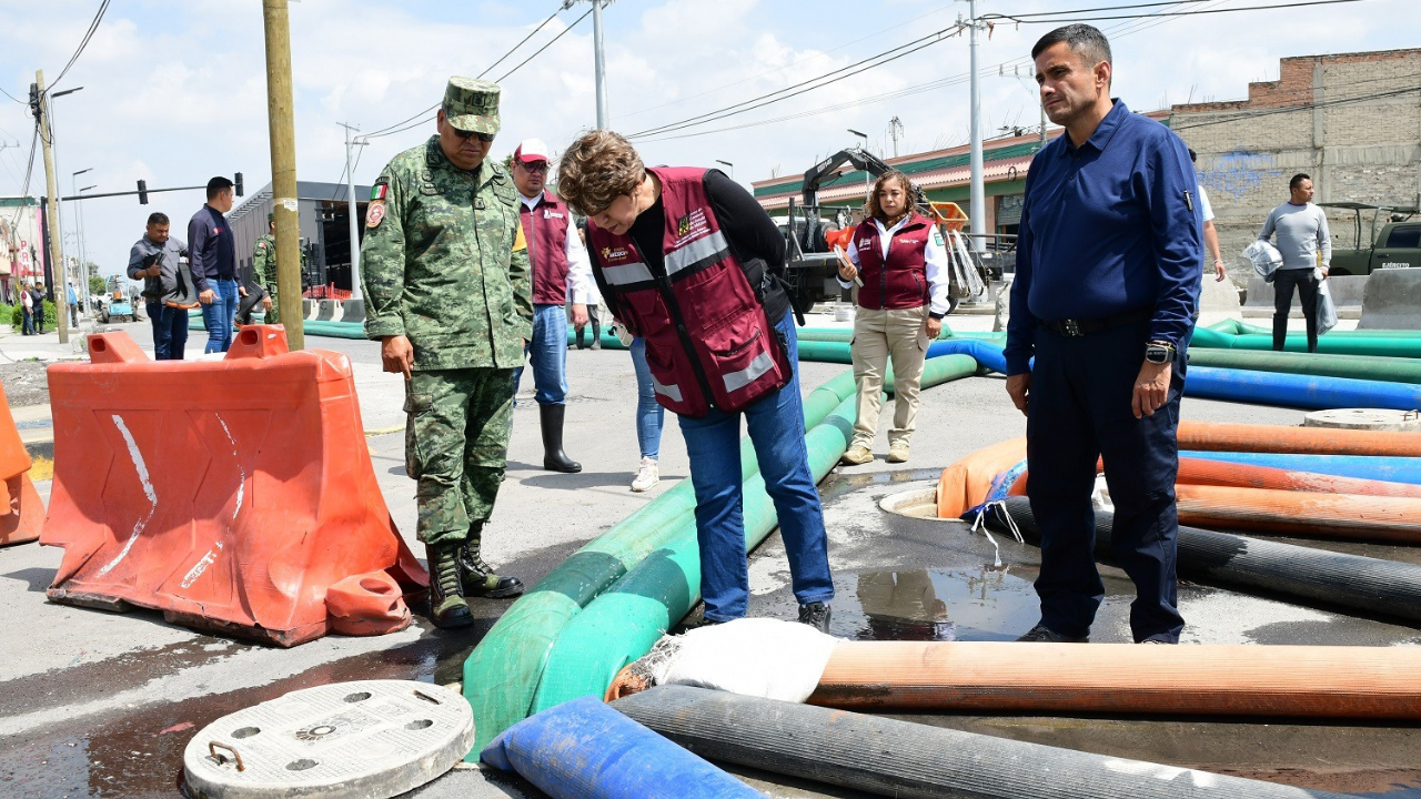 Las autoridades y la Maestra Delfina Gómez revisaron los avances en las obras del Colector Solidaridad e informaron que se están considerando nuevas acciones para resolver las inundaciones recurrentes en la zona, ya que la infraestructura no ha recibido mantenimiento adecuado en 30 años.