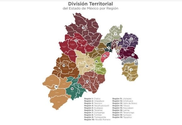 El Gobierno del Estado de México presentó la nueva división territorial de la entidad, la cual fue publicada este lunes en el Periódico Oficial Gaceta del Gobierno. Asimismo, esta regionalización será usada en las secretarías y organismo que conforman el gobierno del estado.