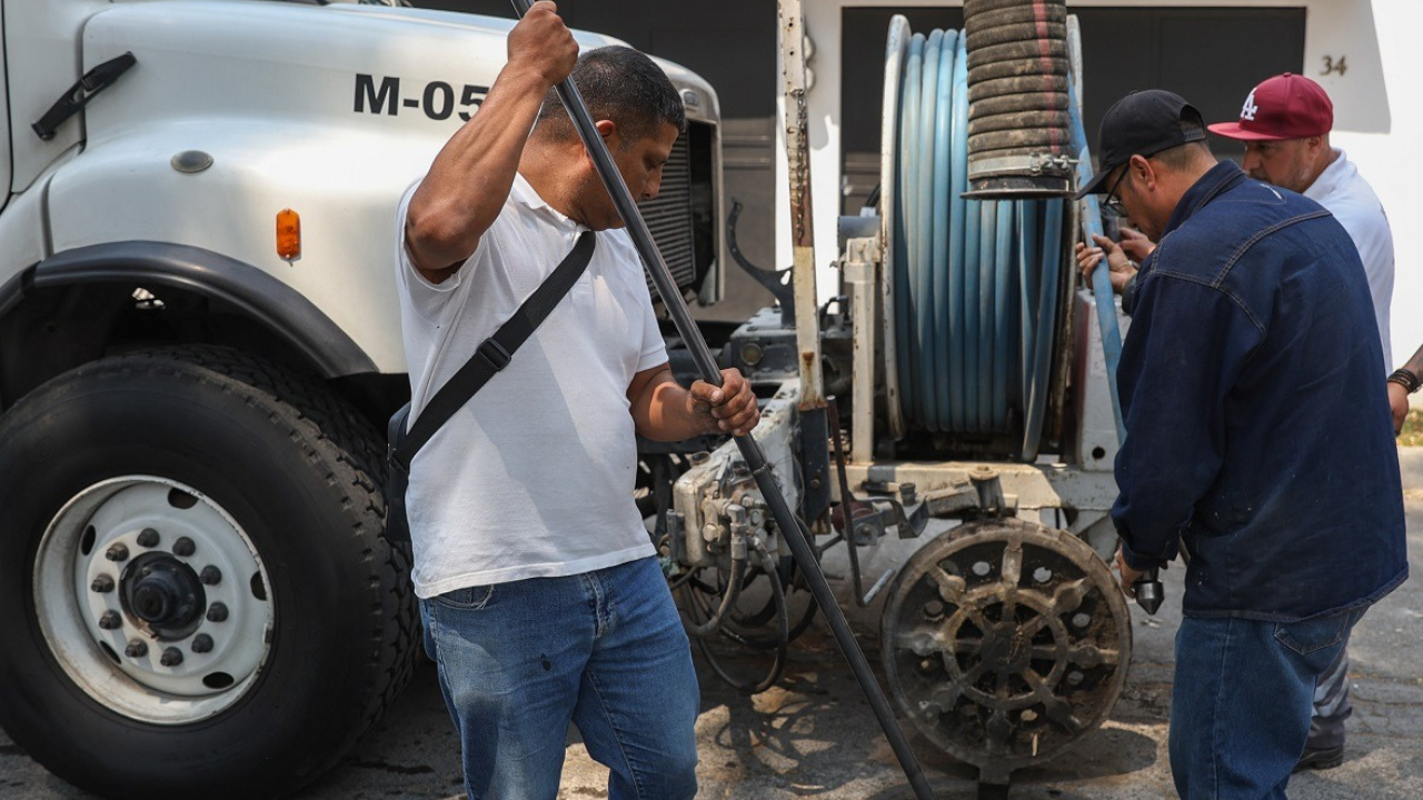 Para este trabajo especializado, se cuenta con una plantilla de 500 elementos, quienes realizan limpieza y sondeo de líneas primarias y secundarias de los sistemas de alcantarillado, de colectores y emisores; dan mantenimiento preventivo a estaciones de rebombeo; además de rectificación y retiro de basura en cauces y barrancas.