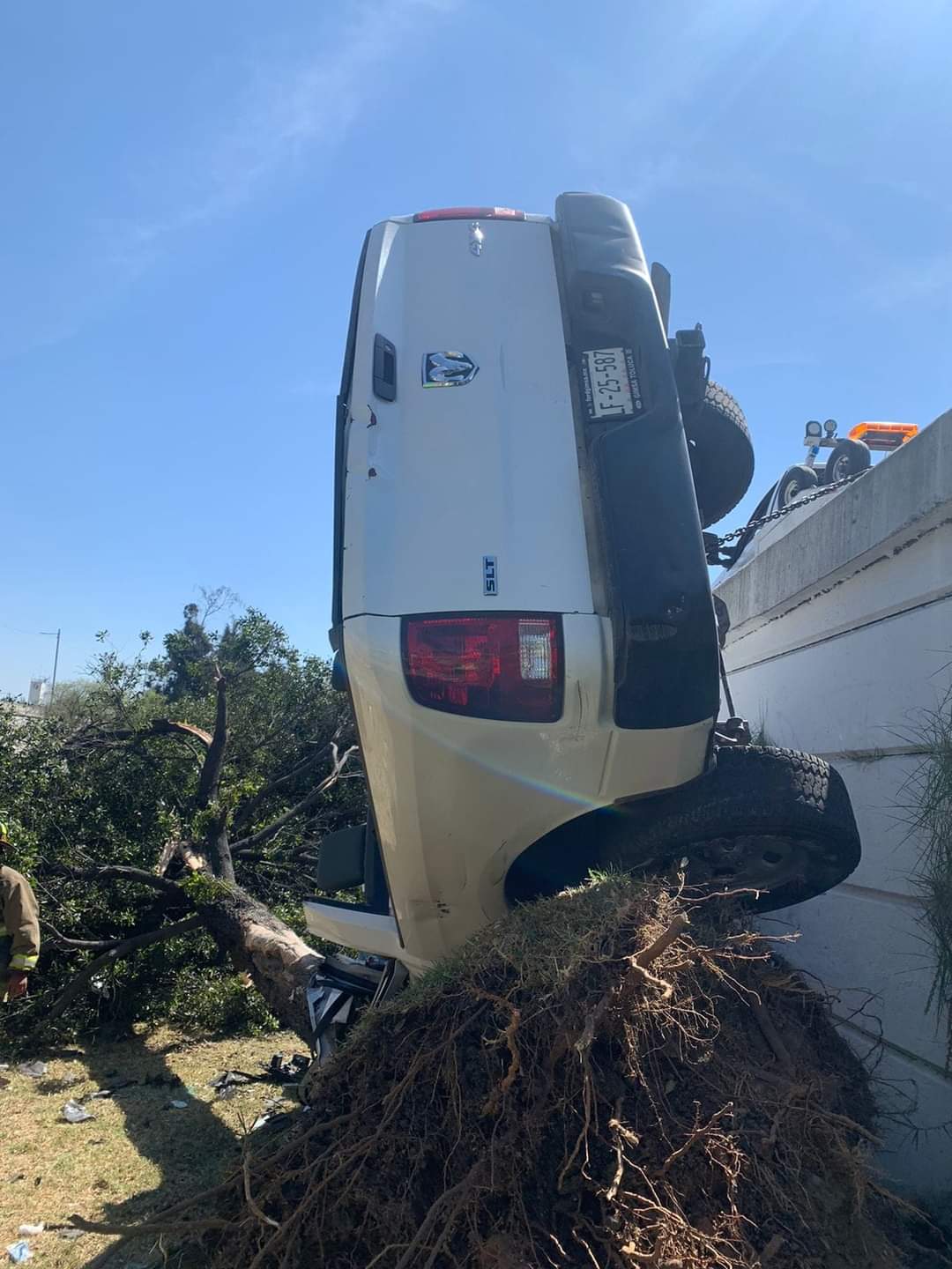 Para su liberación se requirieron dos camiones de equipo especial de corte para desprender la carrocería, además solicitaron del apoyo de bomberos de la misma demarcación para colocar polines de madera y así evitar que la camioneta cayera.