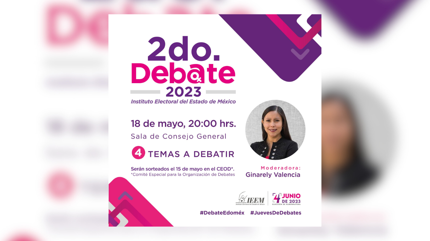 El día jueves 18 de mayo se realizará el segundo y último debate entre las candidatas que aspiran a ser gobernadora del Estado de México. En dicho evento, se espera que las políticas del estado debatan y presenten sus propuestas sobre cuatro temas importantes que afectan y preocupan a la ciudadanía de la región central del país.